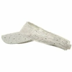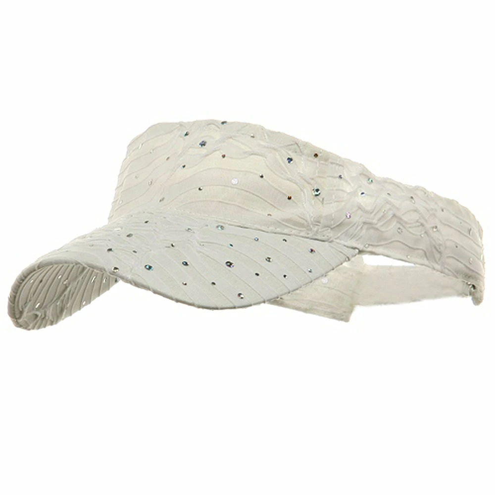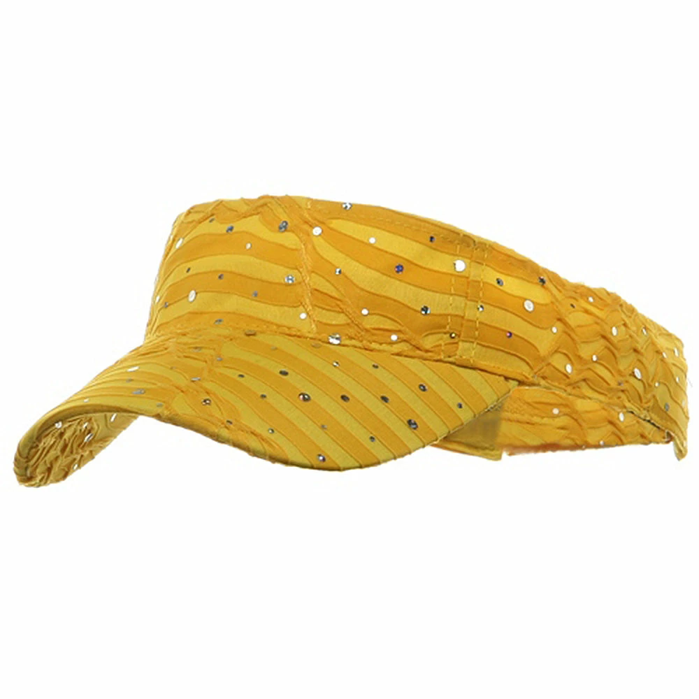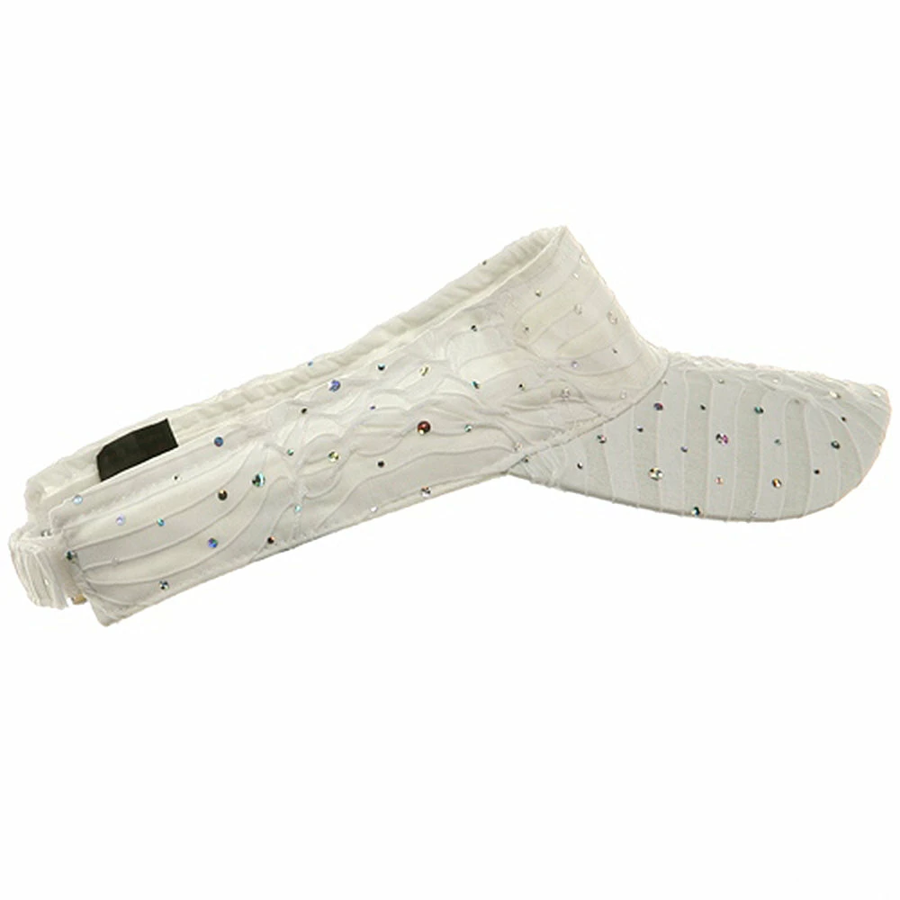 Allow yourself to sparkle and shine in our white Glitter Visor. Made from a unique blend of cotton and metallic, this thin ribbed and textured hat combines the traditional look of a visor, with a modern and glamorous touch. Featuring a 2″ high crown, sprinkled with holographic dots from the tip of the 3″ long precurved bill to the strap closure in the back. Fully lined for your added comfort and luxury, this hat is definitely for those who love to make a statement. So go ahead and let yourself shine in any one of these great colors: Yellow, Lt Blue, Orange, Red, Purple, Black, Lime, Pink, Olive, Wine, Brown and Navy.