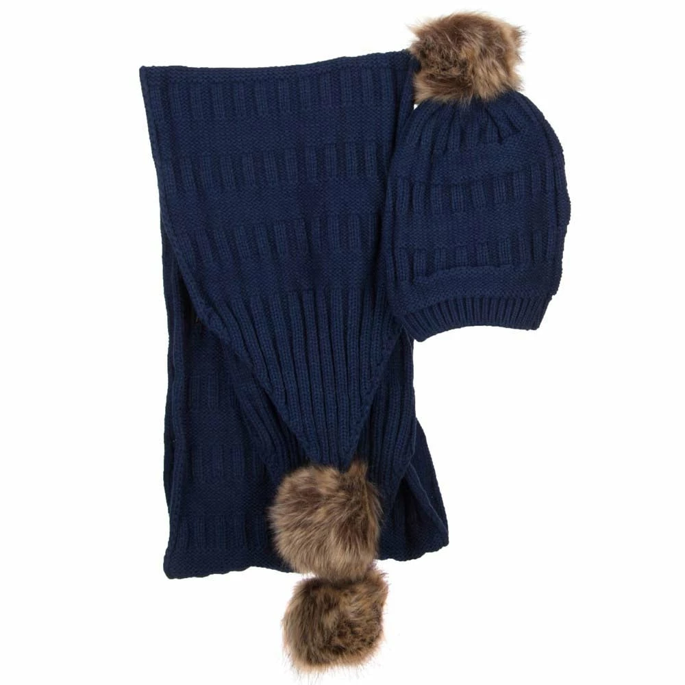 Perfect winter gift set of knit pom beanie and pom scarf for ladies.