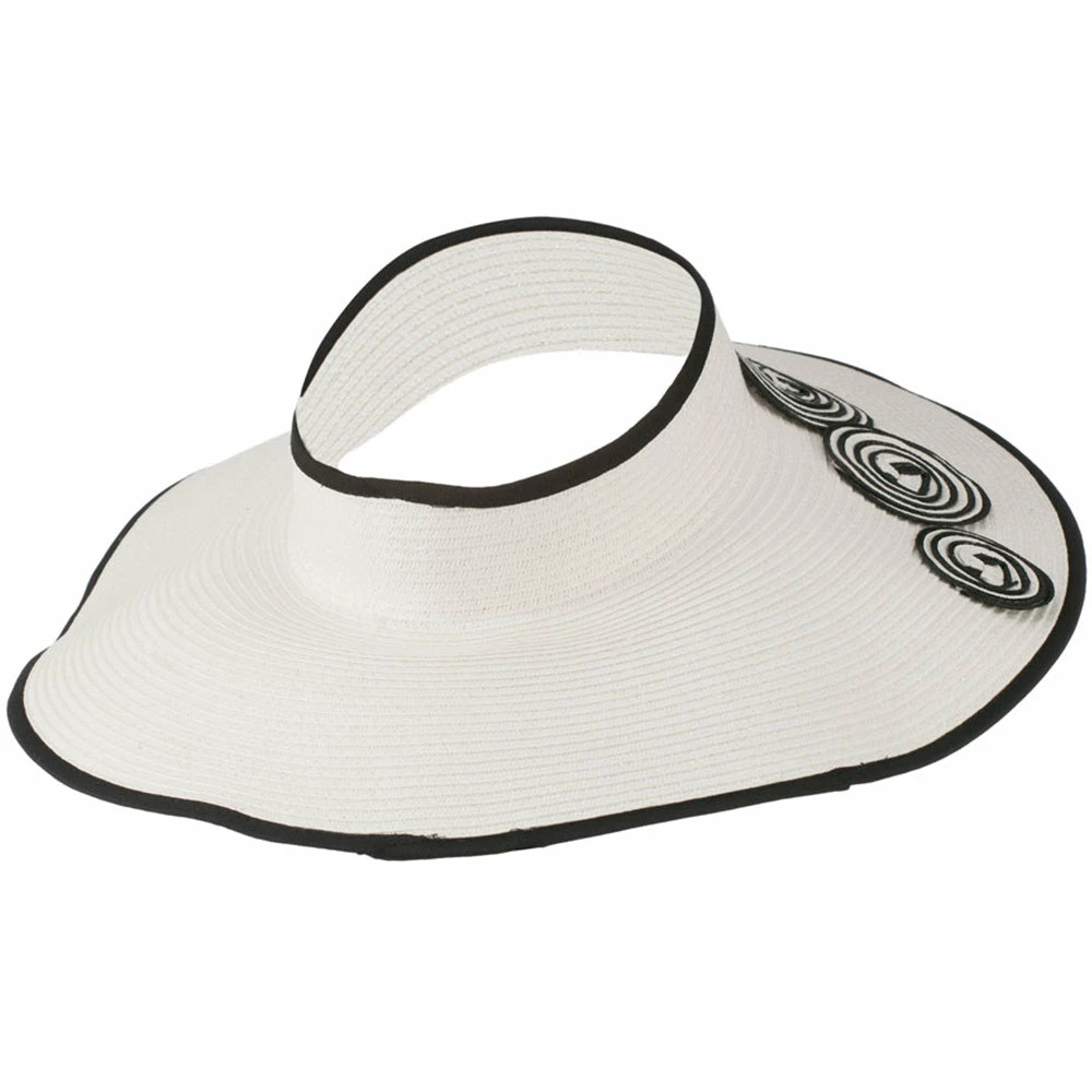 The Paper Braid with Circle Trimming is a wide brim wrap visor which is great for ladies who like being outdoors, whether you’re traveling, working, or just strolling in the park. Its 5-inch brim and the wrap design provide a great coverage area under the sun. Additionally, it has floral decorations on the brim to express its beautify and feminine style. The colors are pleasantly natural and vivid and they are fashionably assorted enough to grab people’s attention as well as its usefulness against the sun. The hat is made of paper straw for lightweight and durable construction.