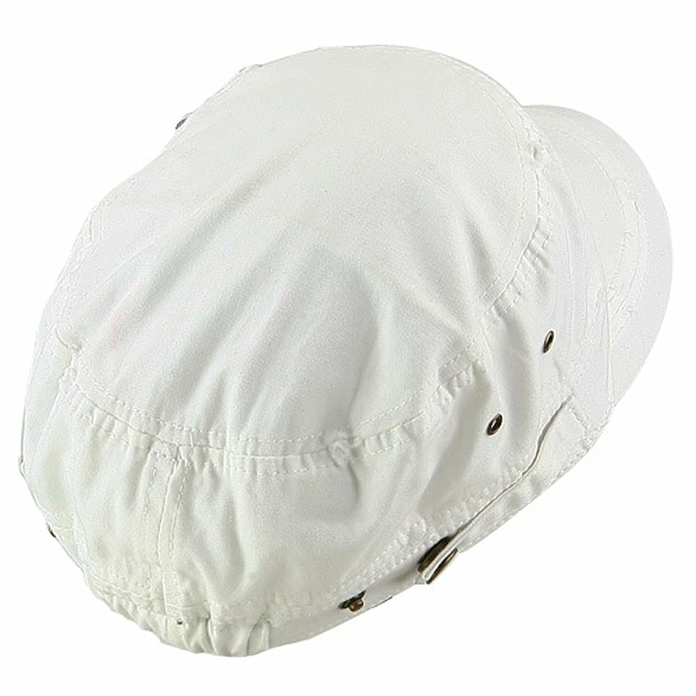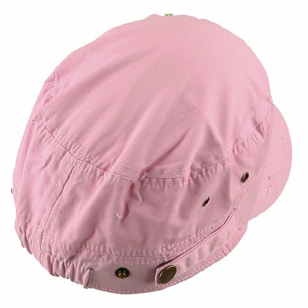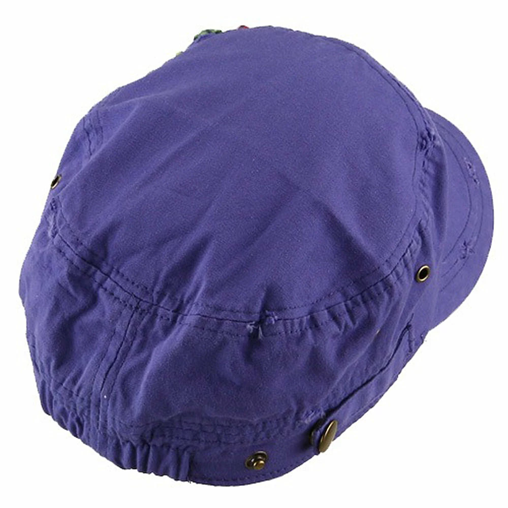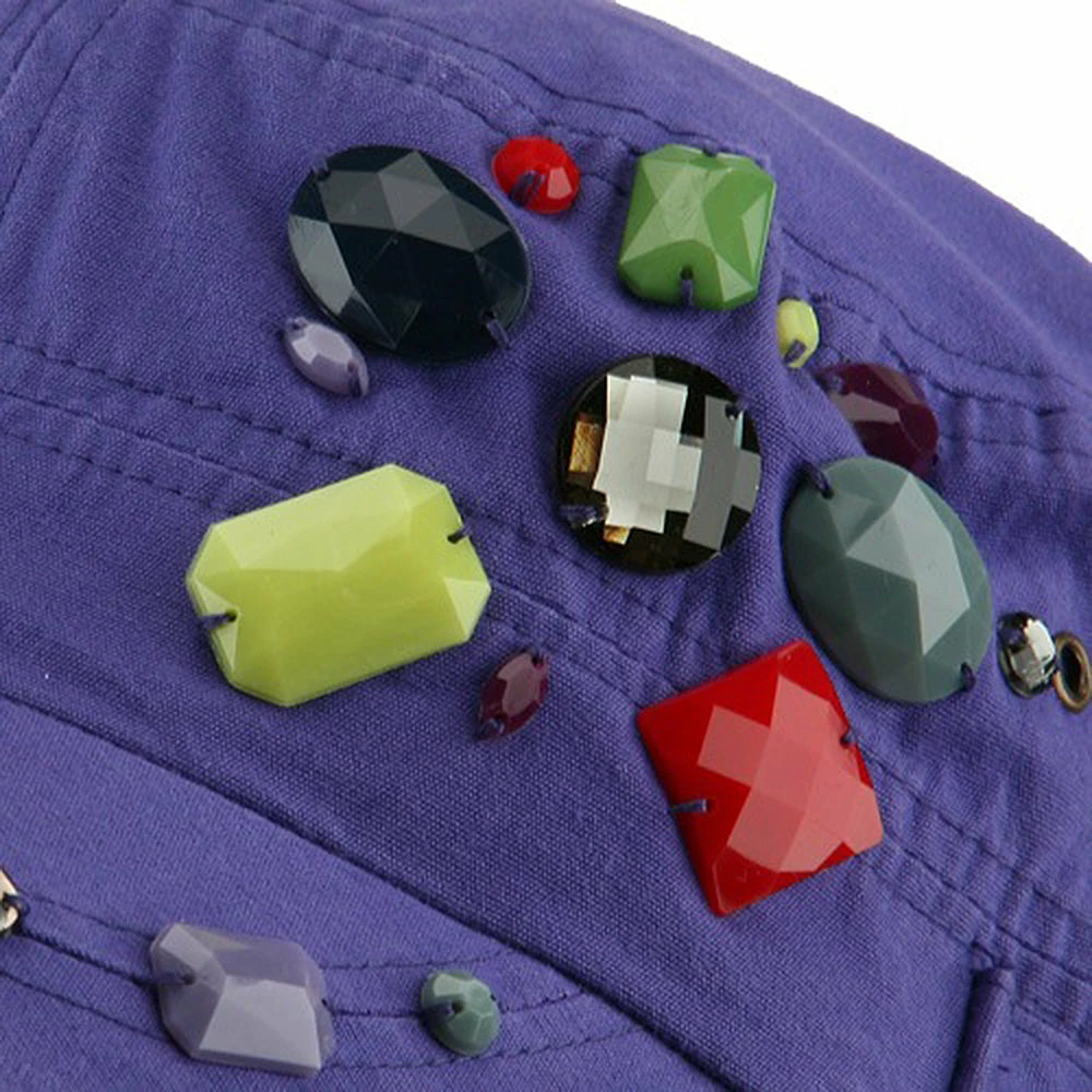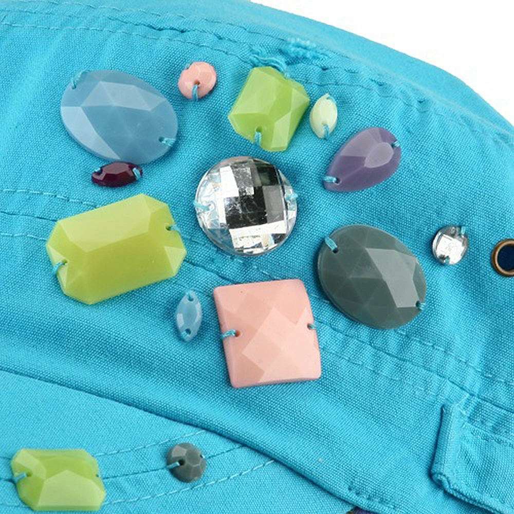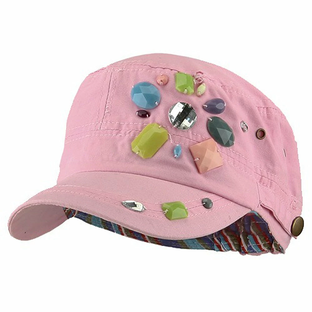 OurScattered Colored Gem Cap is just fabulous jeep style army cap that will get all the people’s attention with this visually stunning look this hat is featuring.On the solid color ofjeep style army cap, decoration gems are attached on the side of hat, offering unique style of look.Made from 100% cotton and with fully lined inside, this cap features 3 inches crown and 2 1/4 inches long pre-curved bill and same color is featured under the bill as well.This hat is designed to fit almost any head types as it comes in one size with elastic band closure hidden in the back.You will look fashionable for sure with trying this wonderful cap.
