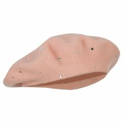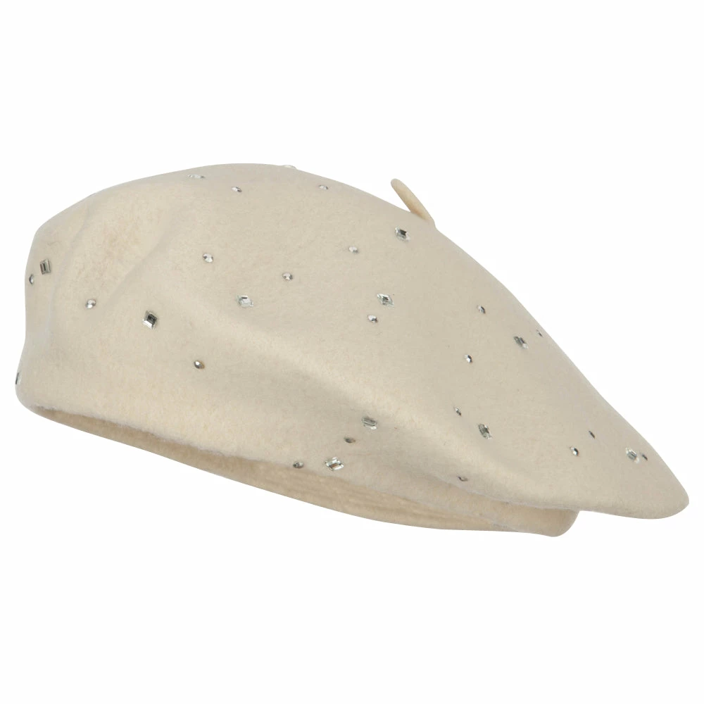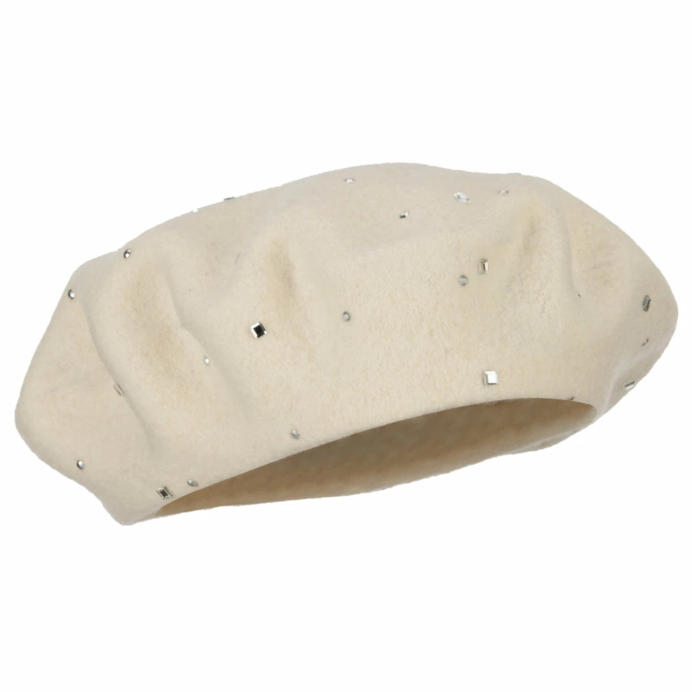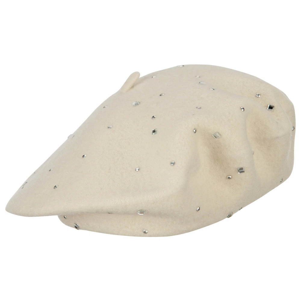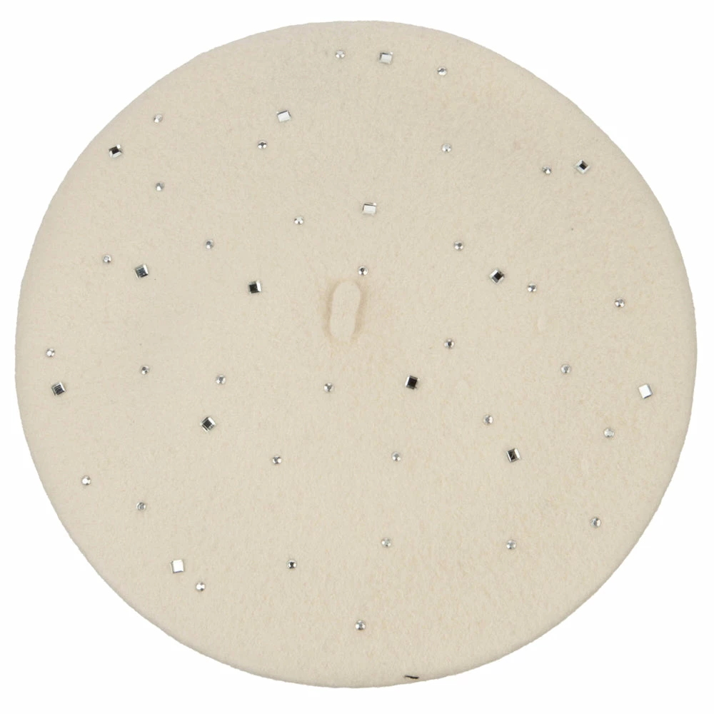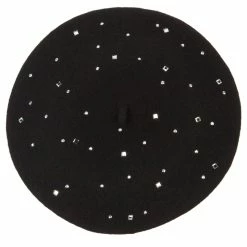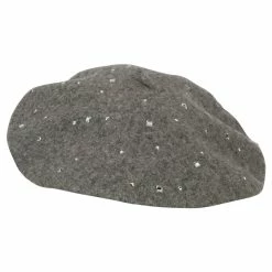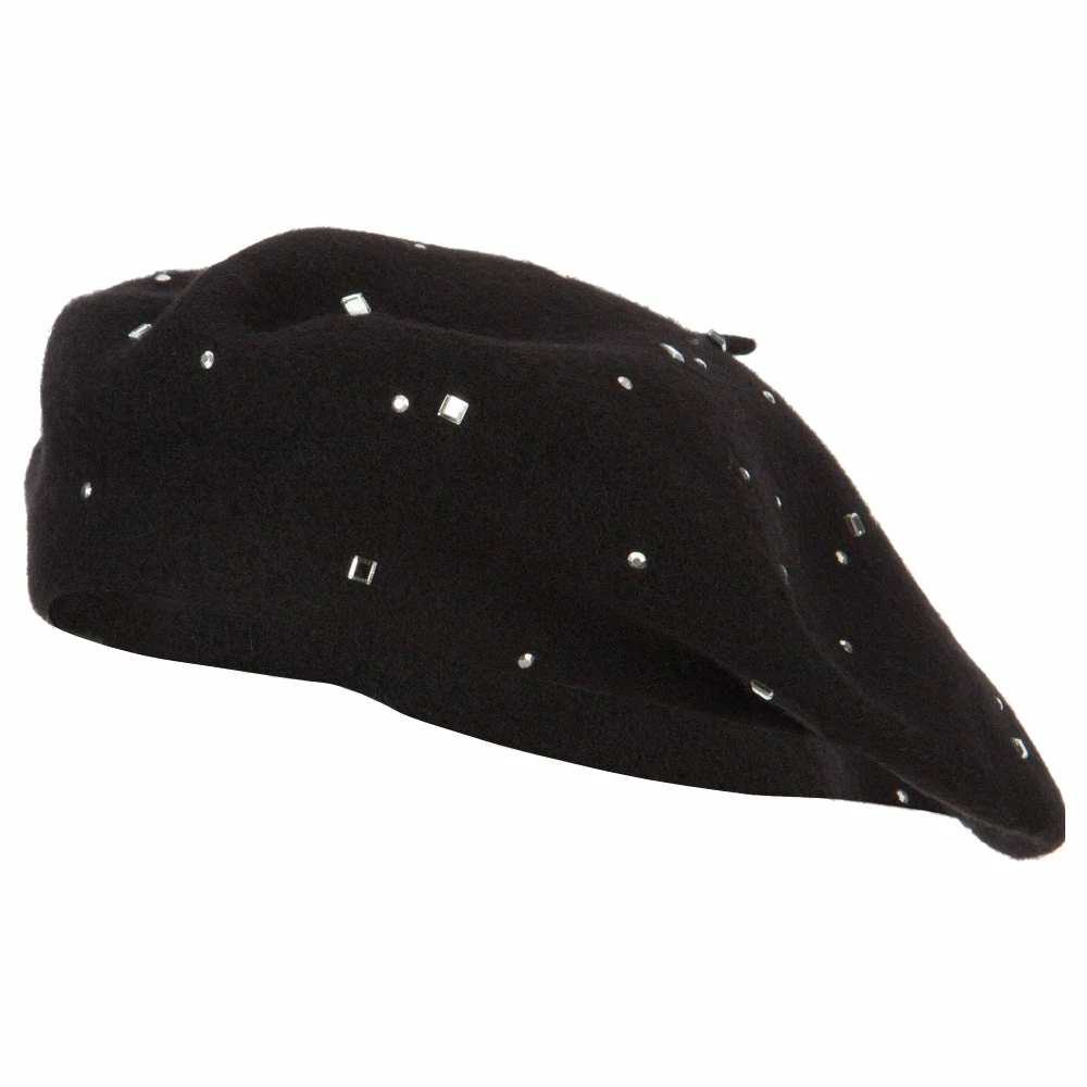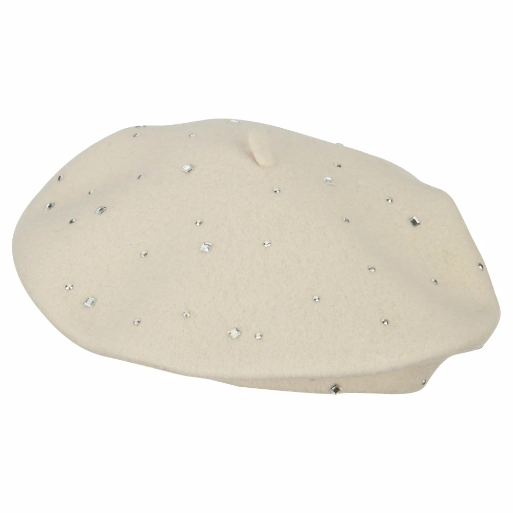 Wool Blend French Beret with Crystal Stones