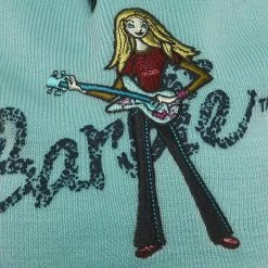 Here’s a great Rocker Barbie beanie and gloves set to keep your child warm. The knit cap and gloves come in a cotton candyof a stretchy knit, to fit comfortably.The hat is double layered to ensure insulation thoughout the winter months, yet lightweight enough to keep in a jacket pocket. The hat is embroidered with Barbie playing a guitar while the gloves are printed with rubber images of Barbie’s face. The crown of the hat is trimmed with reinforcing dark blue stitch for a better fit.