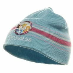 Make sure your little princess stays bundled this winter season in style with our Disney Princess hat and glove set. Made from 100% fluffy acrylic, this set features a stretchy beanie measuring 8 inches deep and wide, with a colorful princess emblem outlined in shiny sequins. Sure to please your little princess. Also included with this set are textured gloves measuring 6 inches long and 4 inches wide. Ideal for ages 3-7 years.