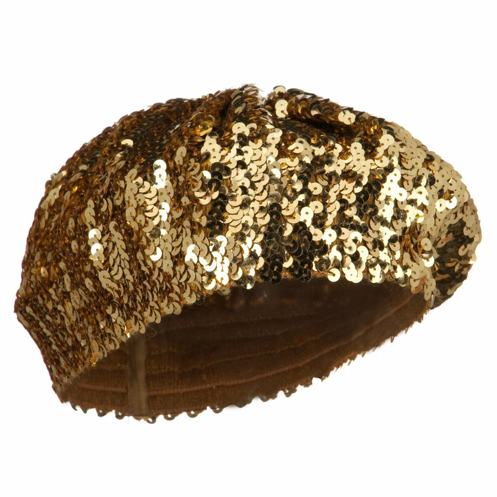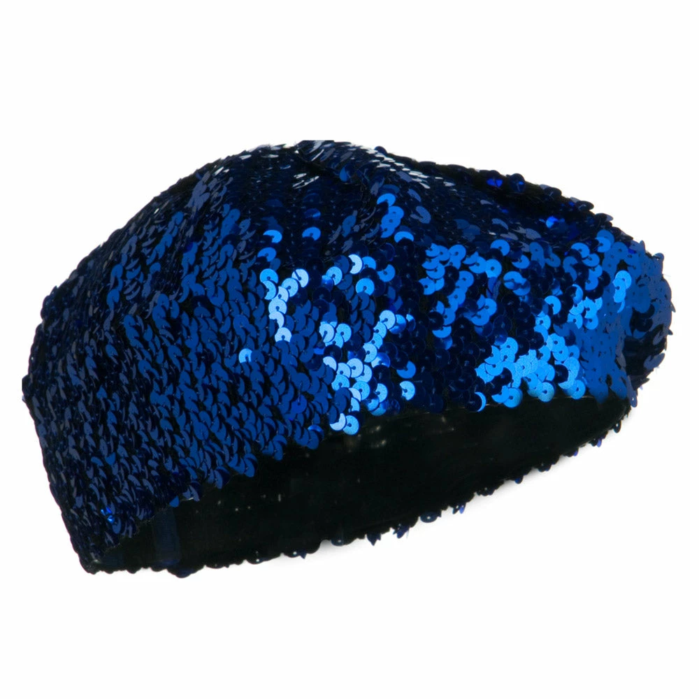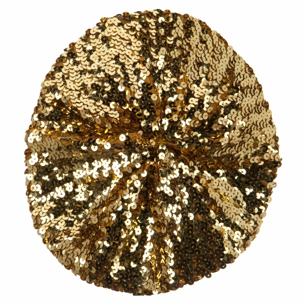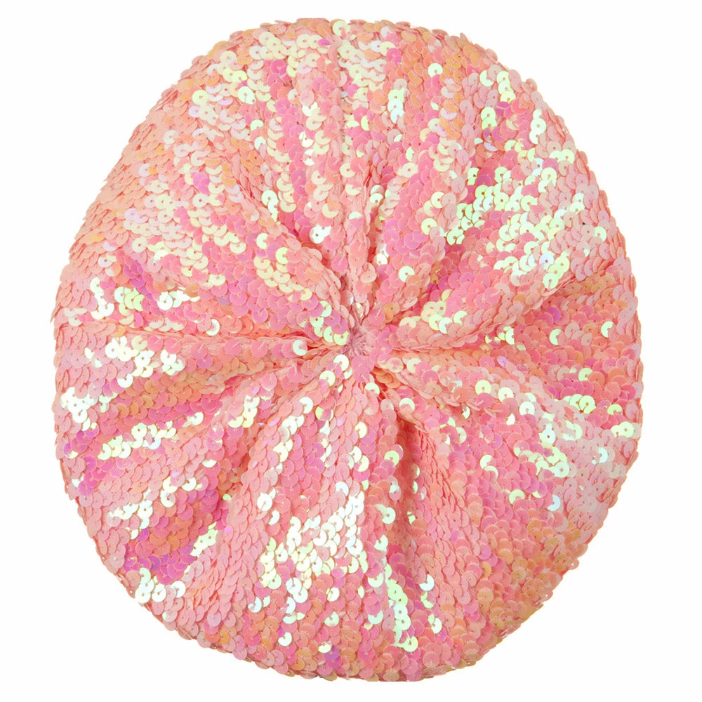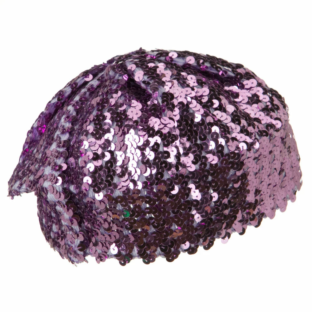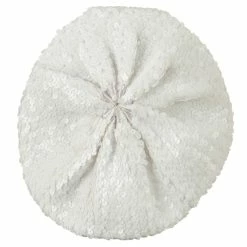 Flat hat measures 9 1/2 x 9 1/2 inches, with crocheted sequin decoration.