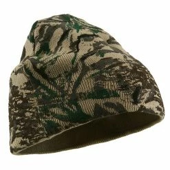 Stand out in your surroundings while offering your head and ears warmth and coverage in Forest Camo Design Acrylic Knit. Proudly made in the USA from 100% turbo acrylic, this thick and flexible cap is ideal for your next hunting or fishing trip. Featuring a 8 inches deep and 9 inches wide crown, covered in a camouflage printed design, this hat will not only cradle your head, but provides a snug stay on fit for children up thru adults. The perfect hat for the sportsman or woman in your life.