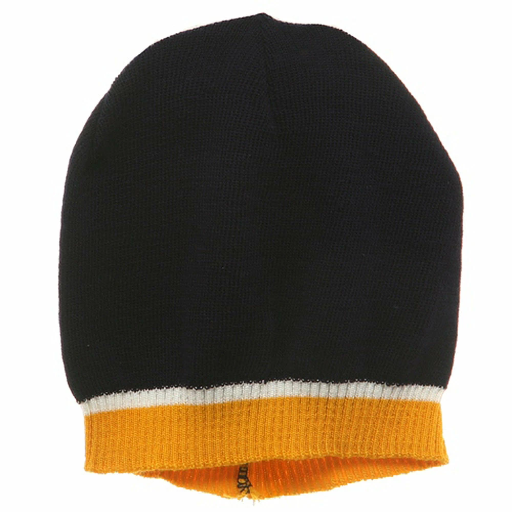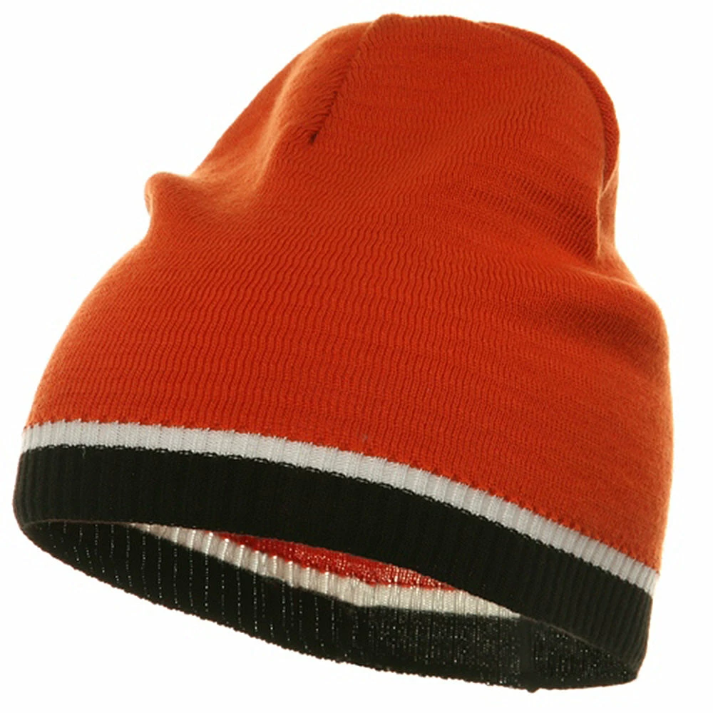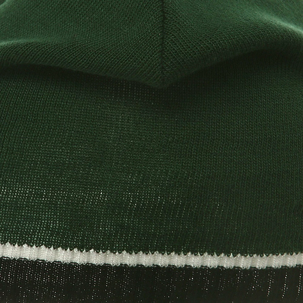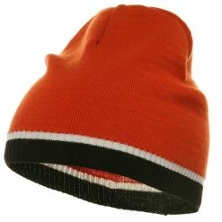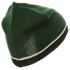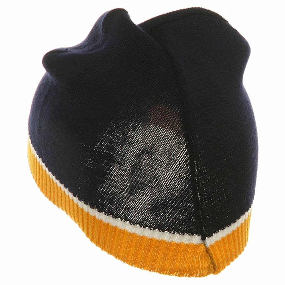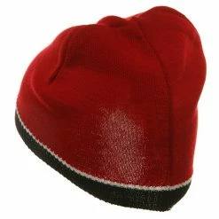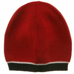 This beautifully simple, slim three color beanie will serve you well throughout the fall and winter. Constructed out of 1 panel of fine acrylic knit, with 1 seam running down the back, this beanie offers extreme stretch and flexibility for a great fit for any head shape. The body of the hat is a bright clear blue with stripes of white and rich navy blue accenting the finely ribbed opening. Lightweight and thin, the soft beanie will easily fit into your smallest pocket for easy travel and warm protection.